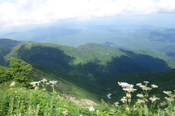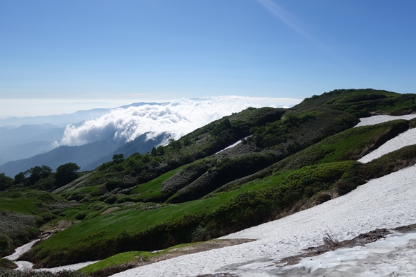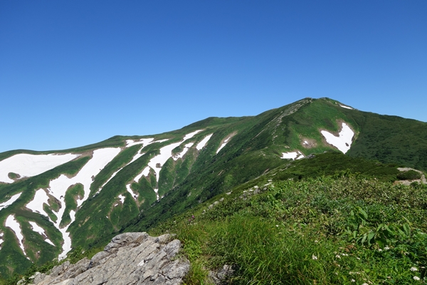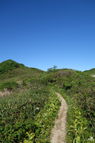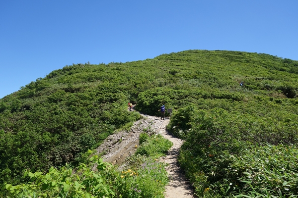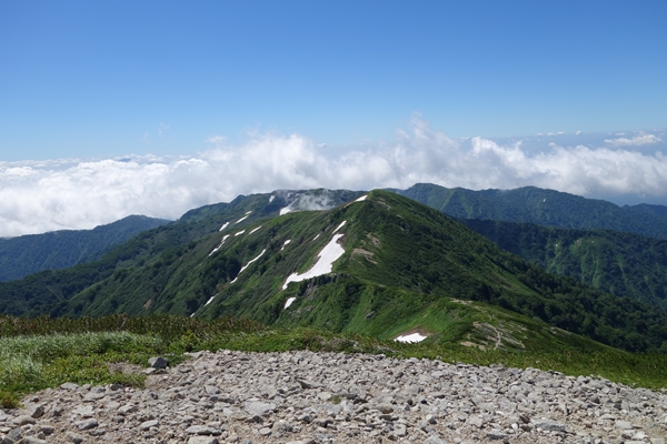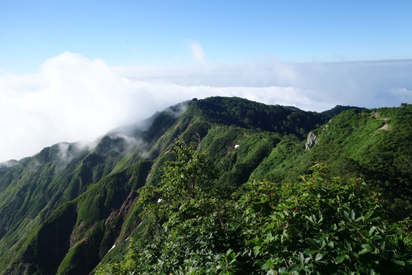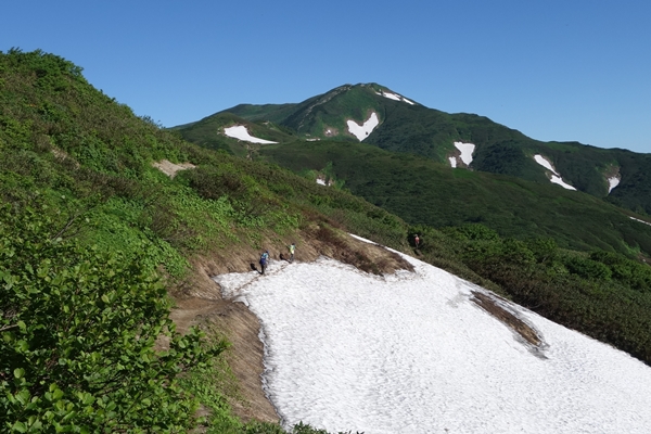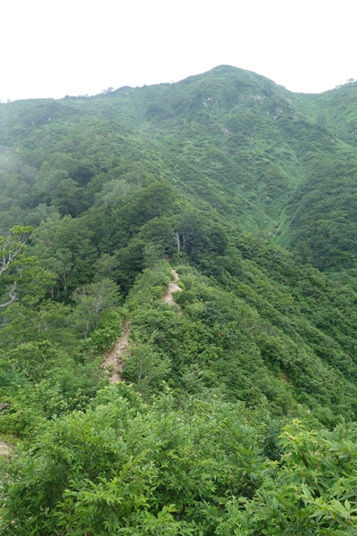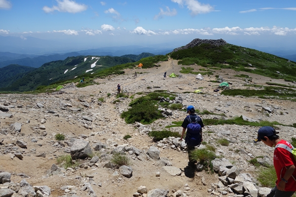 飯豊本山に向けて尾根道を歩きます。 今日は身軽! |