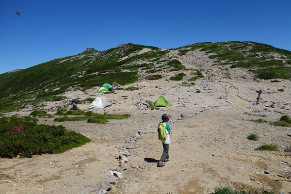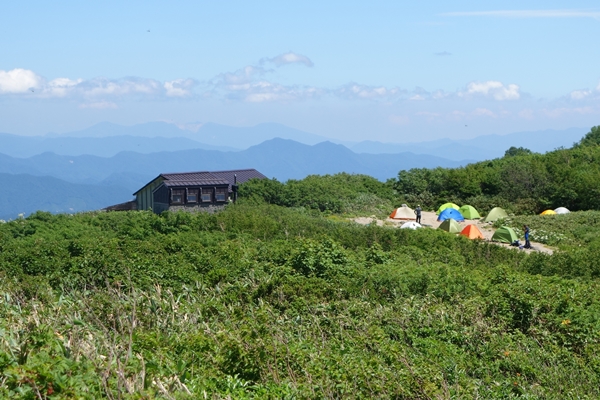 本山小屋のテン場。 小屋から少し離れてました。 |