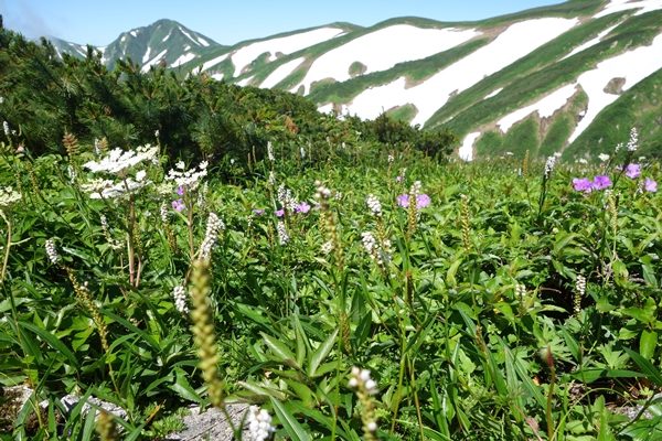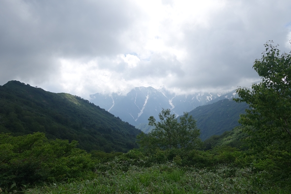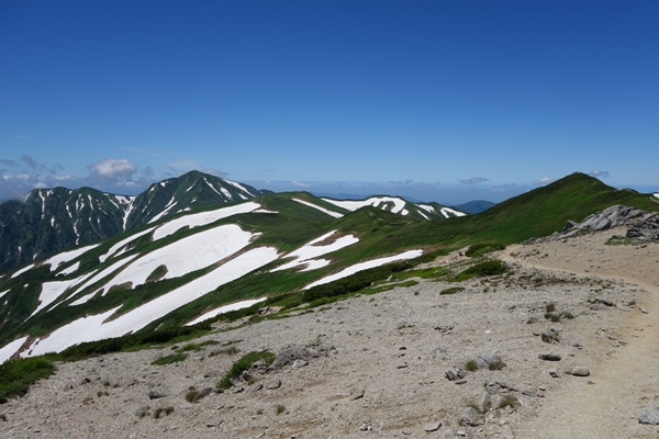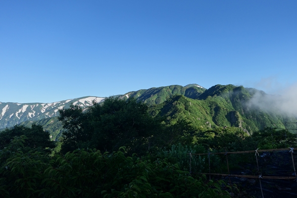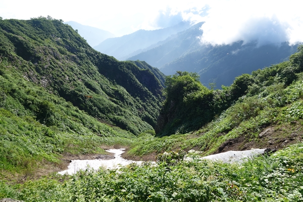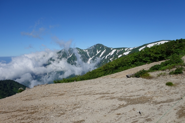 種時山と切合小屋の間の雪渓。 雪が緩んでますが慎重に。 |