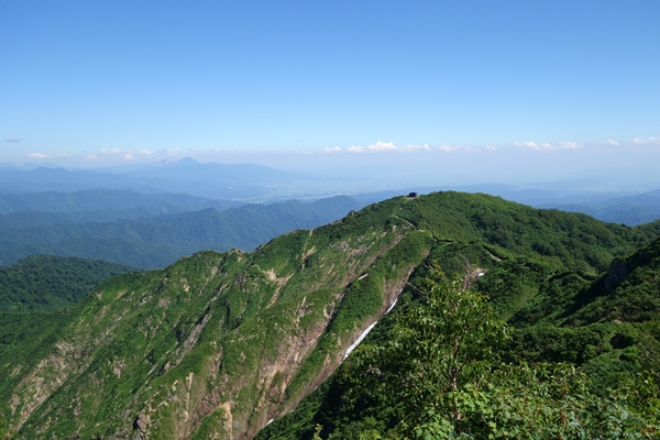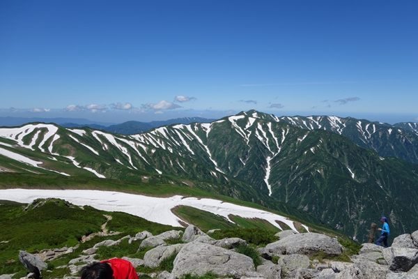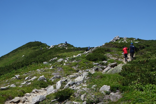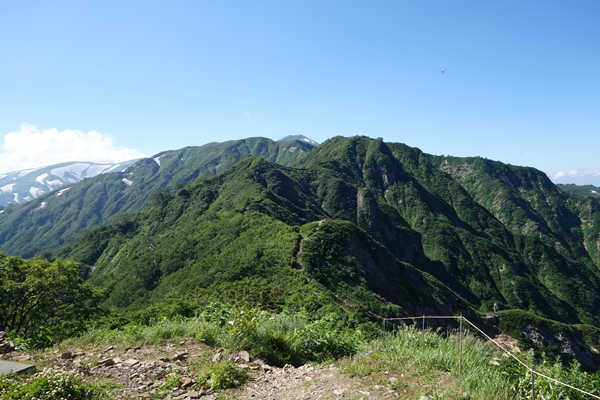地蔵山から三国岳に続く稜線を歩く人が見えます。 |