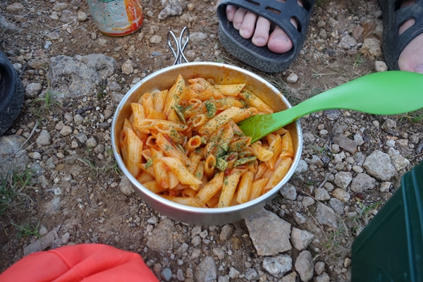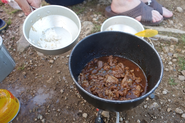 昼寝後、あっという間に夕食の時間。 2日目は開けて食べるだけ系。。。 |
