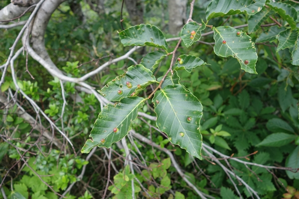 長男が見つけた、不思議ないぼいぼが付いて変色しつつある葉っぱ。 病気?虫にやられている? |