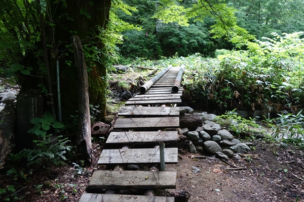 十森の水場・・先を歩いていた嫁さんと長男は水場と思わず通り過ぎたため、水を汲み損ねました。。 |