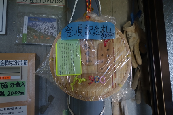 3つの小屋で一番いろいろ売ってるように思います。 オリジナルTシャツにオリジナル山バッチ、登頂の喜びで思わず買ってしまいました(笑)。 |