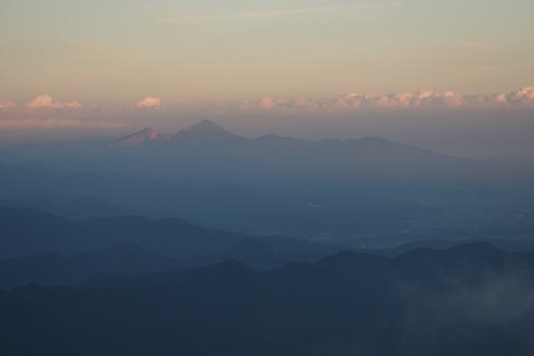 雲のため残念ながら御来光は拝めず、これくらいが最も赤かった時でした。 |