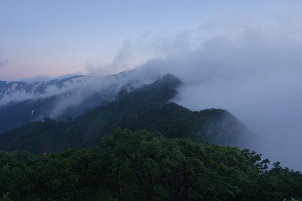 翌朝、雲が下から湧き上がって東側へどんどん流れています。 |