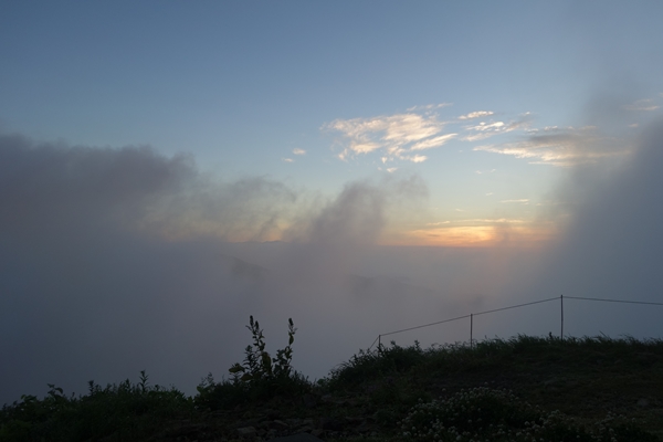3日目の朝。 雲が多くて、またしても御来光は厳しそう。。 |