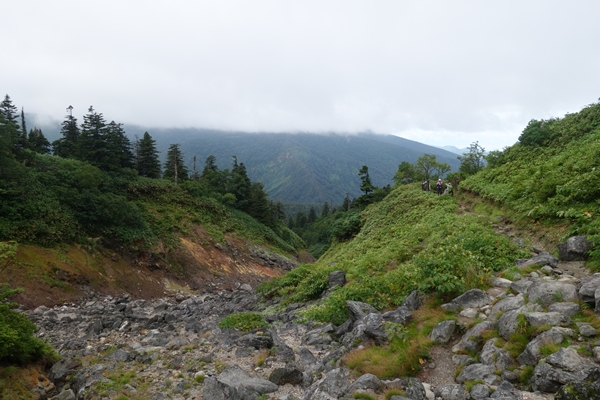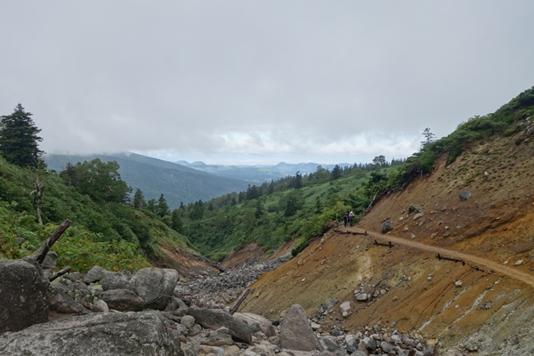 火山性ガスでここだけ枯れてます。 |