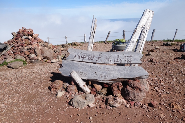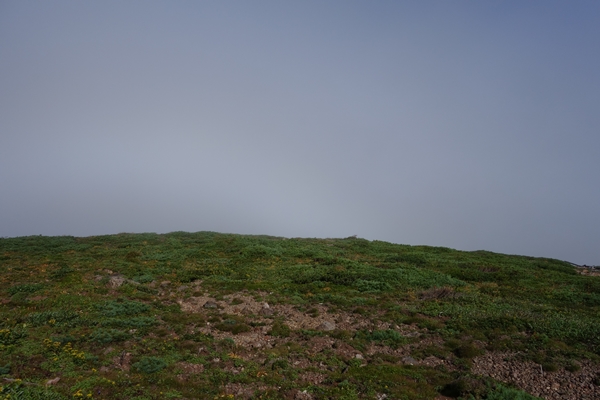 方角によっては雲で何も見えません。 しばらく山頂で雲が晴れないか待ちつつ休憩。 |