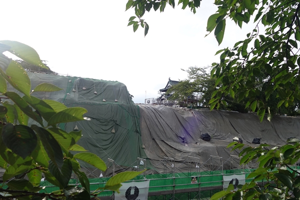 石垣は修復中でした。10年掛かるとか。 |