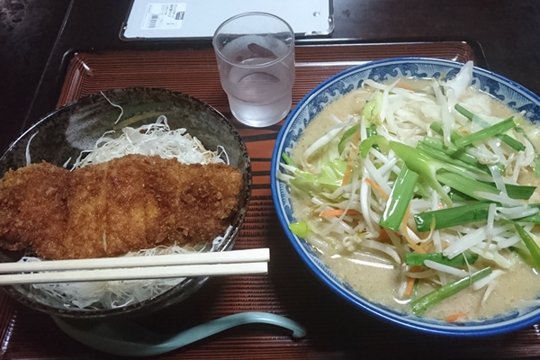 前日の夜、田島で立ち寄った豚太郎さん。 味噌ラーメンセットの半ソースカツ丼、これ半分?? お腹いっぱいで明日の山歩きに備えられました。 |