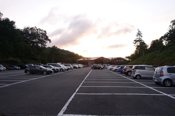 御池駐車場で車中泊。 他にも車中泊されている方もそれなりにいましたが、広い駐車場なので余裕有。 |