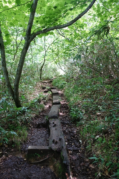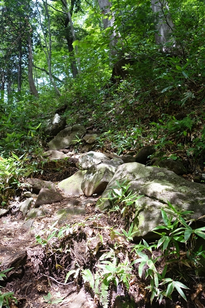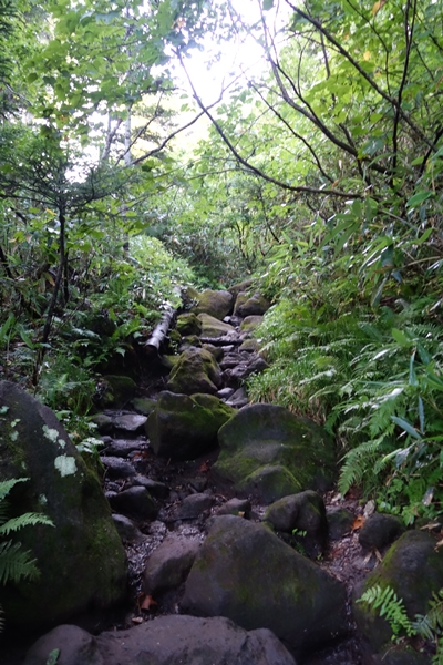 5年前は下山時に苦しんだ記憶のある石がゴロゴロの道。 小1の次男は大変そうだったし、スニーカーの子供たちの靴はずぶぬれだったなあ、 なんて昔を思い出しながらのスタート。。 |