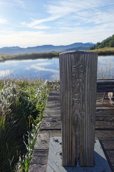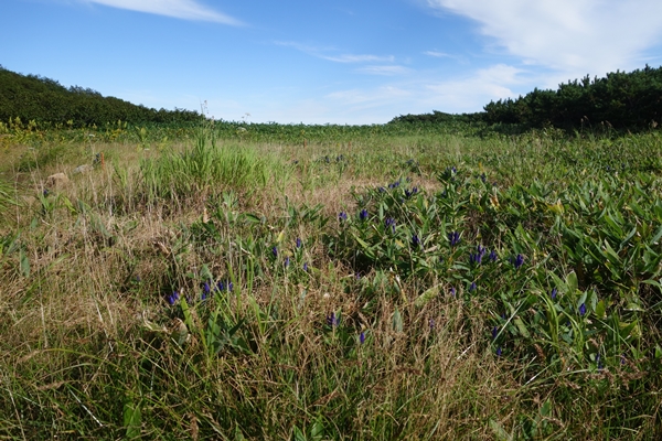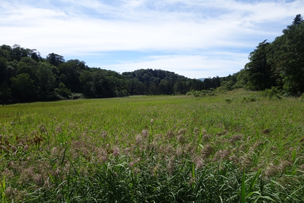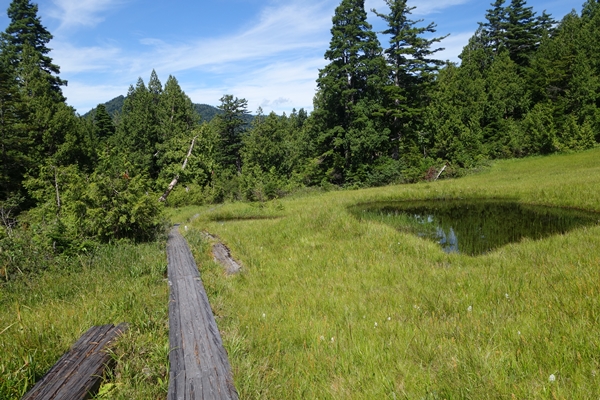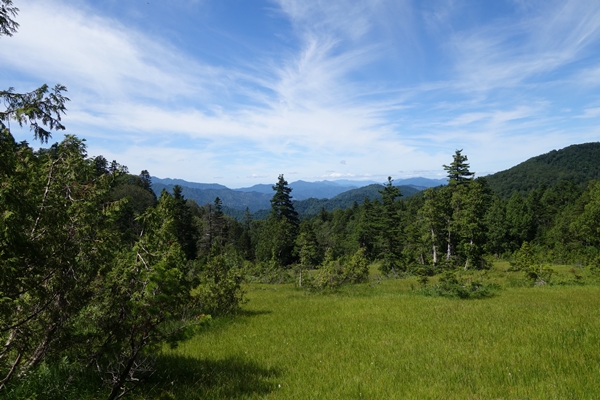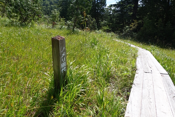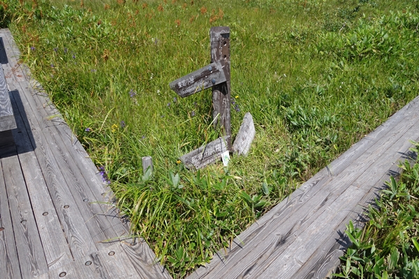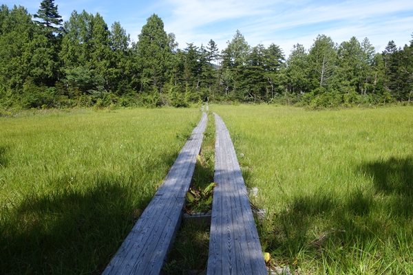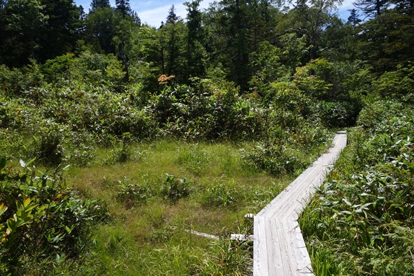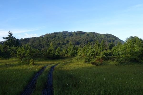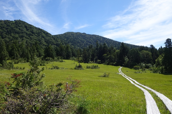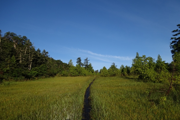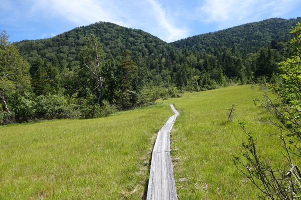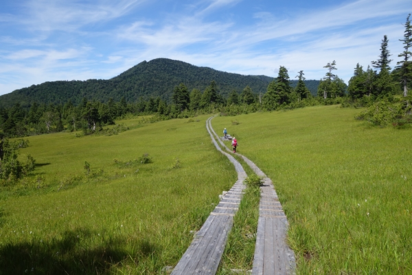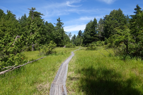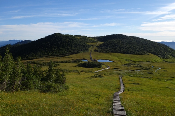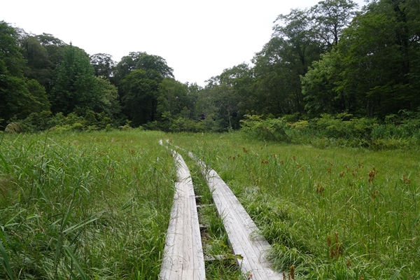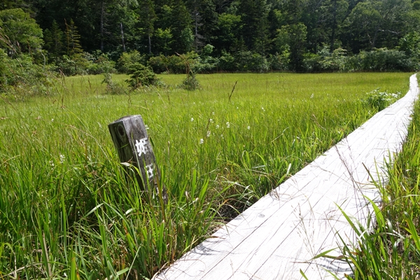 広沢田代を振り返る。 木道は続くよどこまでも。 |