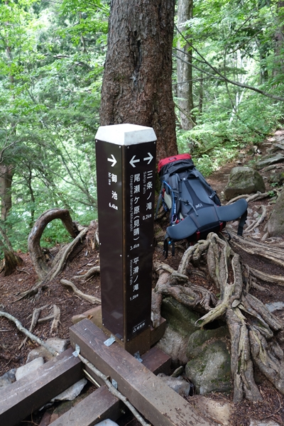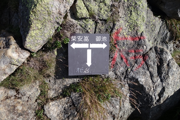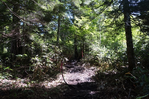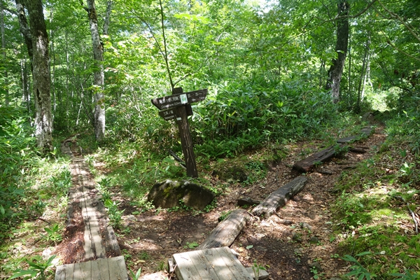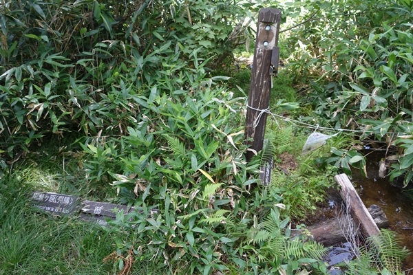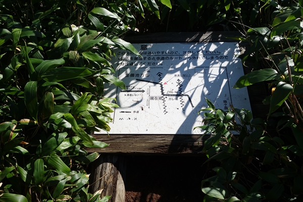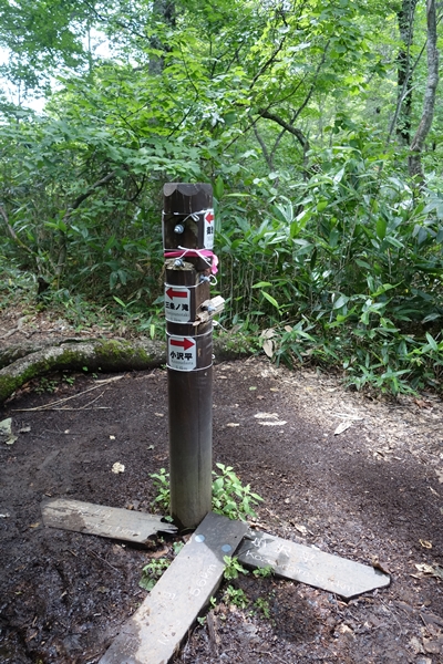温泉小屋へ直接下る道は廃道とのこと。 |