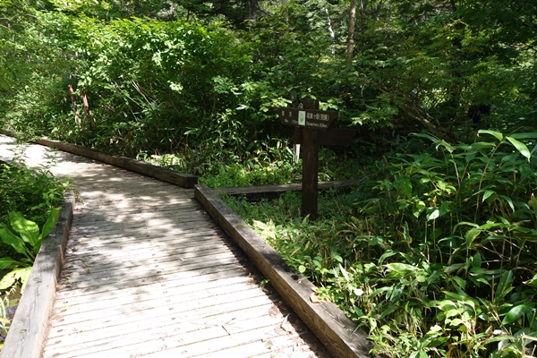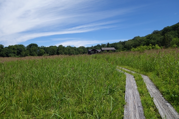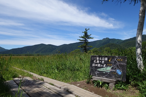 尾瀬ヶ原の端っこ。 温泉小屋方面へ進みます。 |