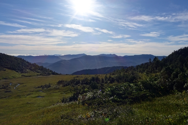 見晴、山小屋がたくさんあって山の中と思えない雰囲気。 どこから入山しても3時間くらいかかりそうなところなのにと、びっくり。 |