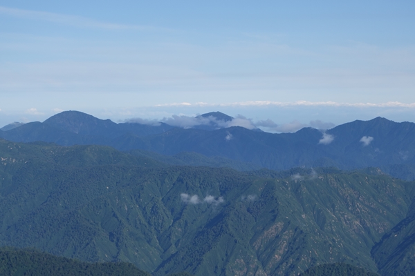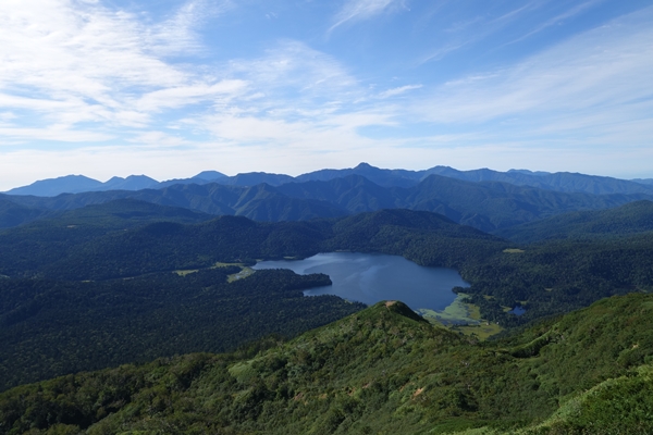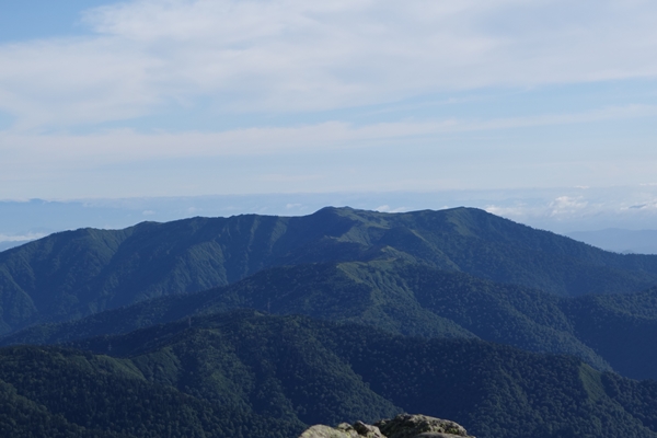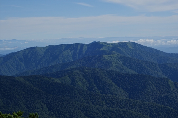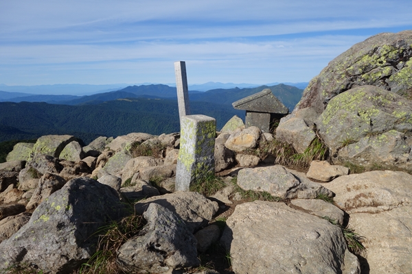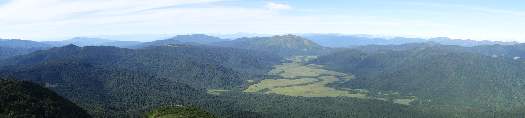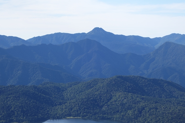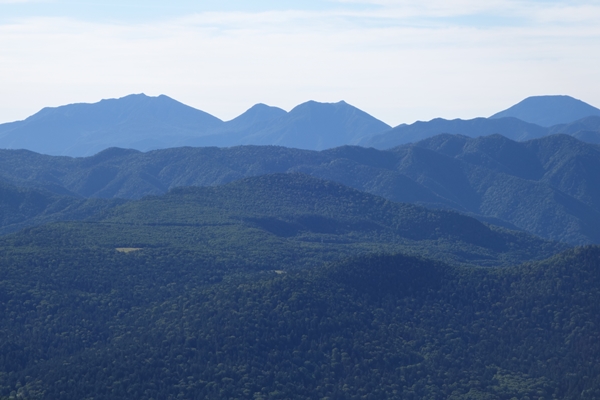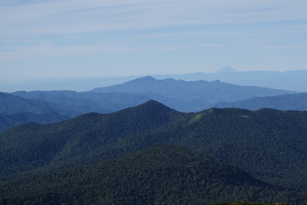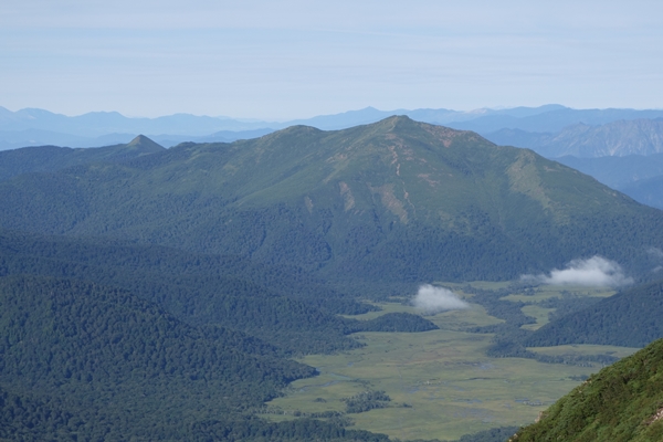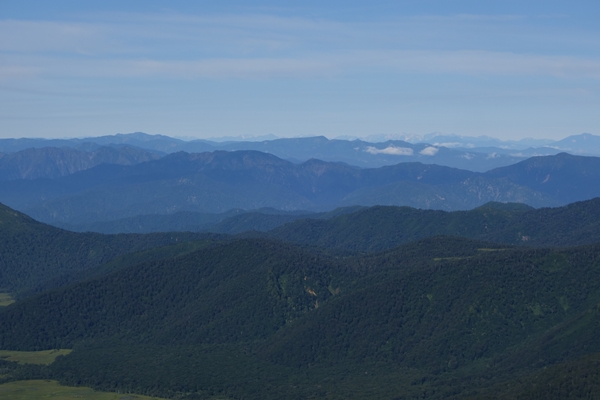 会津駒ケ岳の左奥は飯豊? 随分遠くて、福島の山ながら近くに見えるのは関東の山ばかり。 |