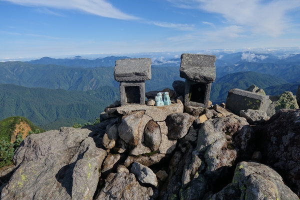 祠。 誰もいない山頂で絶景も独り占めです。 |