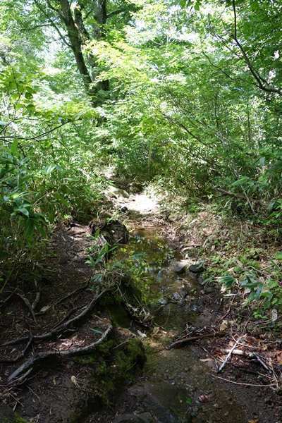 下の方は沢状態。 靴が洗えると思って歩く。 |