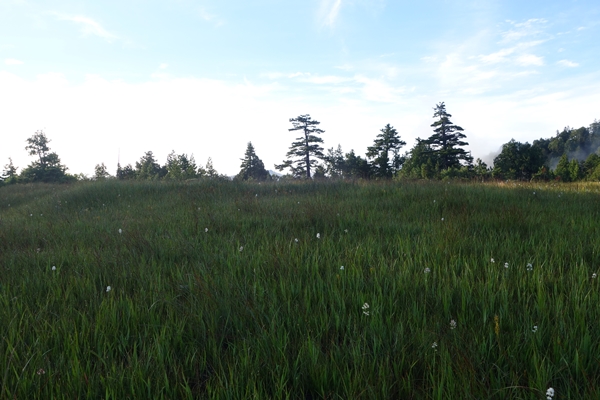 見晴キャンプ場。 平らで設営しやすそうですが、尾瀬ヶ原は見えないロケーション。 |