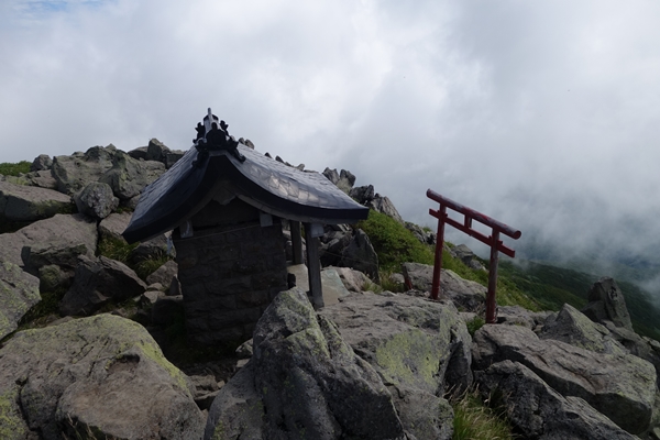 山行記へ 山の写真へ 山ある記Topへ ルート 第1日 岩木山八合目駐車場〜鳳鳴ヒュッテ〜岩木山〜鳳鳴ヒュッテ〜岩木山八合目駐車場 備考 累積標高差:360m コースタイム:1日目:1時間55分 第2日 宿泊したスーパーホテルで6時半から開始の朝のバイキングへ。満室だっただけあり、朝一から大盛況でしたが、 ビジネスホテルの朝食としては種類も豊富で美味しかったです。朝食後チェックアウトして岩木山へ向かいます。 前日は雲に隠れていましたが、近づくにつれてはっきり見えるきれいな姿。8時の岩木山スカイライン開通から 少し経った頃にゲートを通過し、8時30分過ぎに8合目の駐車場に到着でした。カーブが69あるという、いろは坂 よりも急カーブ続きの道を走るとすでに展望が良く標高も1260mくらいまで上がってしまいます。 駐車場から9合目までリフトもありますが、さすがに歩こうということで、リフト横の登山口から山頂を目指し ます。石がゴロゴロした林の中の坂道を登りますが八甲田山よりは山道らしい感じでした。30分ちょっと 歩くと視界が開けてリフトからの道と合流し、鳥ノ海が目の前でした。 9合目から山頂までも30分ほどの道のり。鳳鳴ヒュッテからの岩場の登りが2日間で一番登山らしい所でした。 リフトから散歩のような感じで歩いてきていた小さなお子さんがちょっと苦労していたけれど、立山で 一ノ越から雄山に登る道ほどの長さも混雑も有りません。山頂からは360°の大展望・・・となって ほしかったのですが、8時過ぎから段々と出てきた雲が邪魔して北側の展望はあまりなく、南側の白神山地方面 のみ良く見えていました。良く晴れた日には北海道まで見えるようですが、残念ながら雲で遮られおりました。 山頂で休憩した後、岩木山神社の奥宮にお参りして下山開始。50分ほどで駐車場に戻りましたが、9合目から 8合目までの林間の道が岩が滑りやすくて下りは気を使いました。2度ほどスリップしましたし、侮れません。。 駐車場にあるレストハウスで山バッチを購入し、2時間ちょっとの岩木山歩きは終了。岩木山神社や嶽温泉から 登るのが昔ながらの登山のようですが、標高差も距離も一気に増えるので気合が必要でございます。 山歩き後は岩木スカイラインの入り口にあった嶽きみ(トウモロコシ)の直売所でトウモロコシを買い、 岩木山神社でお参りしたり、カランカランアイスを食べたりして岩木山をもうひと満喫。岩木山神社は 参道も本殿も立派でご利益ありそうな佇まいでした。神社から山頂の奥宮まで歩くとさらにご利益ありそうです 。パワーをもらい、一路仙台へ。まだ帰省ラッシュは始まっておらず渋滞に巻き込まれることなく快調に 走り、義実家でリョンに再会。3日間、親戚を訪問したり、散歩したりとお盆休みをのんびり過ごしていた ようです。翌朝、郡山へ戻り久し振りに戻ってきたユンとも再会し互いの写真を見ながら土産話を聞いたり 話したりでございました。北アルプス山行の予定が青森旅行に変った盆休み、天気は良くて東北の百名山も 19年前に鳥海山を歩いてからの長い道のりを経てようやく制覇できたし、久し振りの弘前を満喫したので、 結果オーライだったかな。ただ、岩手山は2時間しか歩かなかったし、やっぱり歩き足りなかったかな〜(笑)。 2018.8.25記 山ある記前後のキャンプ 夏休み中の他の山ある記 2018年8月12日 八甲田山 |