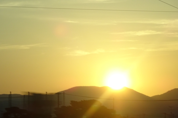 郡山到着時に夕陽。旅の終わり感が出てました。 |
