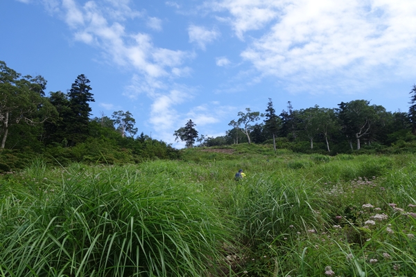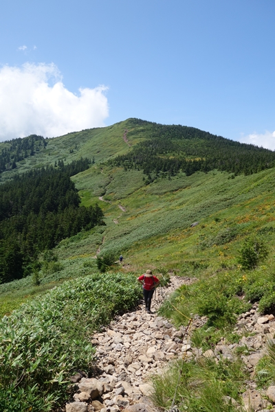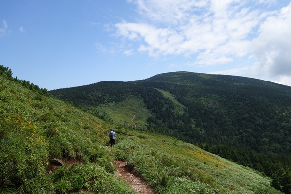 東吾妻山までずっと縦走できるんですよね。 北アルプスとは違って優しい山並み。 |