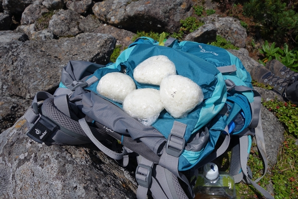 お昼ご飯タイム。 嫁さんが作ってくれたおにぎり。 |