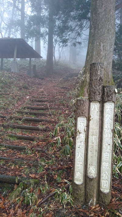 あと少し。2時間ほどの雨中ハイキングでした。 |