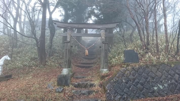 真っ白で、神社以外何も見えませんでした。晴れていたら見晴しは良いようです。 |
