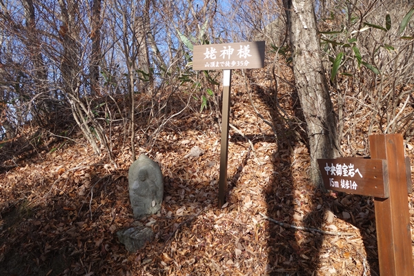 姥神様。 最初に歩いたルートと違い、看板が充実していて、名前の付いたたくさんの岩もありました。 |