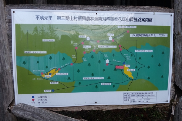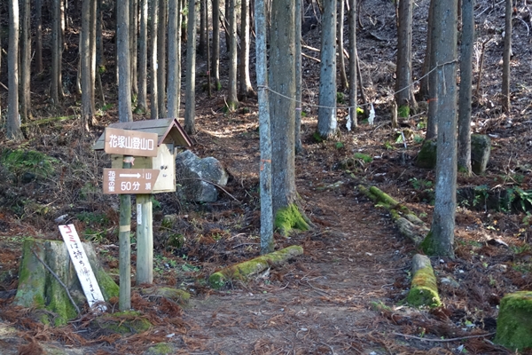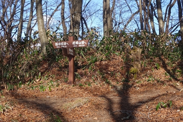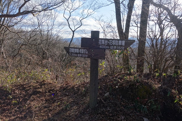登山口に戻ってあたりを見回すと花塚山山頂を示す看板がありました。 最初に気づきませんでした。。 腹ごしらえをして再出発。 |