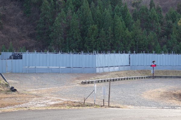 すぐ横にあった除染土置き場。 線量計は低い値を示していましたが、こういう山の中に置かれているんですね。。 |