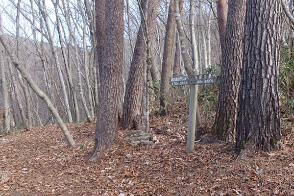 看板も見えましたが、峠の森自然公園との表示。。。 少なくとも右回りの周回コースではないルートを歩いてしまったようで、不安になり引き返すことに。 |