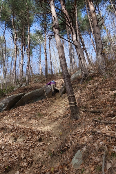 行者戻りの岩。 ロープがありましたが、迂回ルートもあります。 |