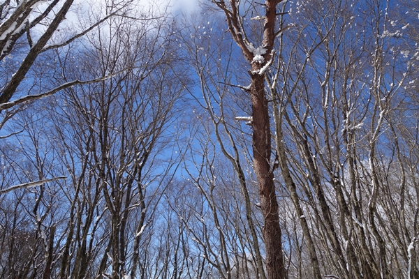 山頂付近、雪が多くなってきました。 |