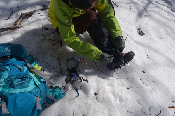 軽アイゼン装着。 |