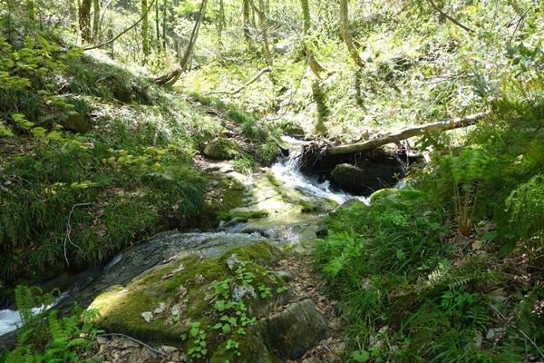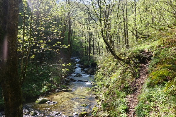 新緑の中の小川、雰囲気は素晴らしい。 |