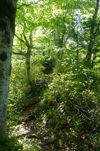 だいぶ登ってきました。 海が見える山と思ってやってきたのですが、見えるような見えないような? |