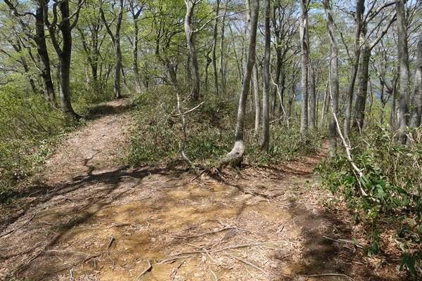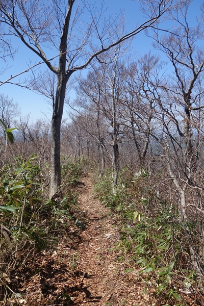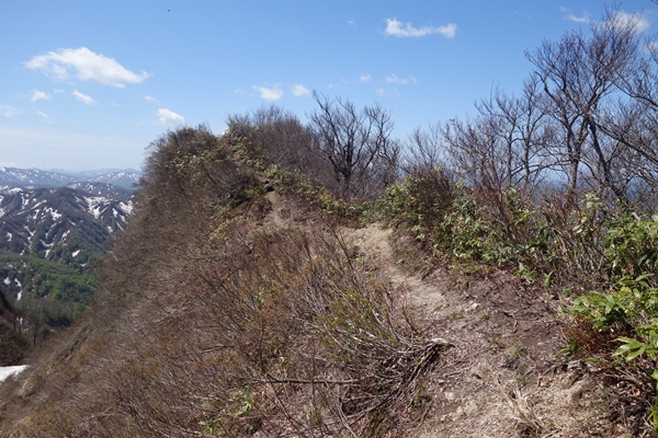 両側が切れ落ちたやせ尾根を少し進むと・・ |