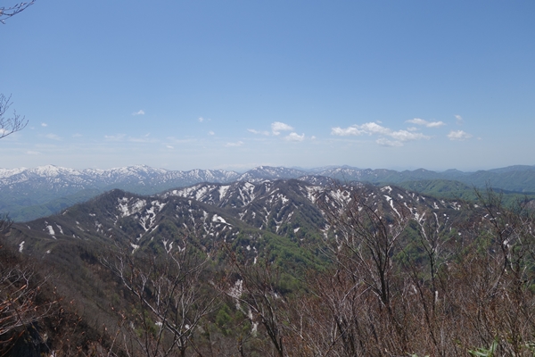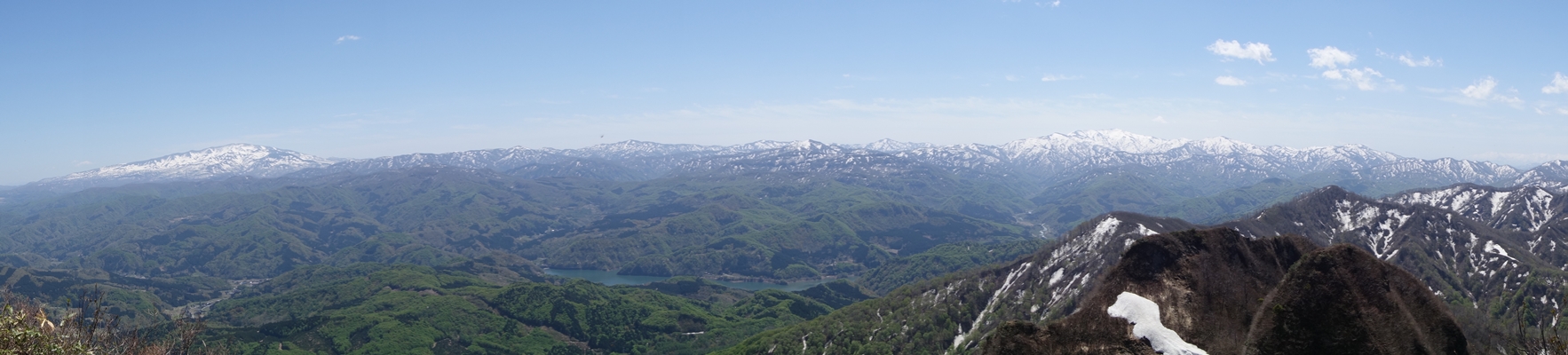 突如反対側の視界が開け、朝日連峰の大絶景が現れました。 |