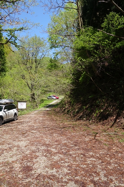 登山口の小さな駐車スペースの奥にも駐車スペースがありました。 |