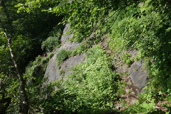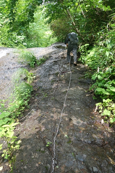 帯岩、鎖もありますが、歩くために少し削られている感じ。 |