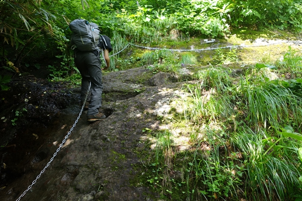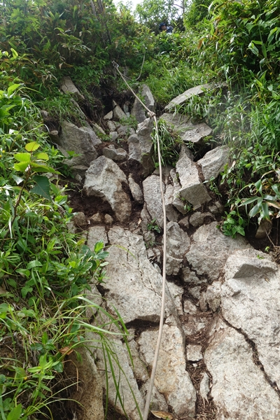 ロープ。 なかなかな登り(下り)。 |