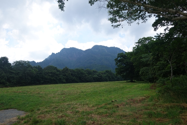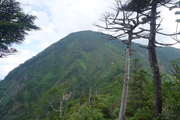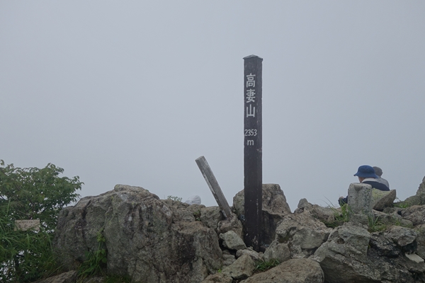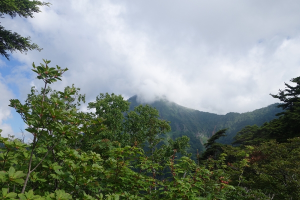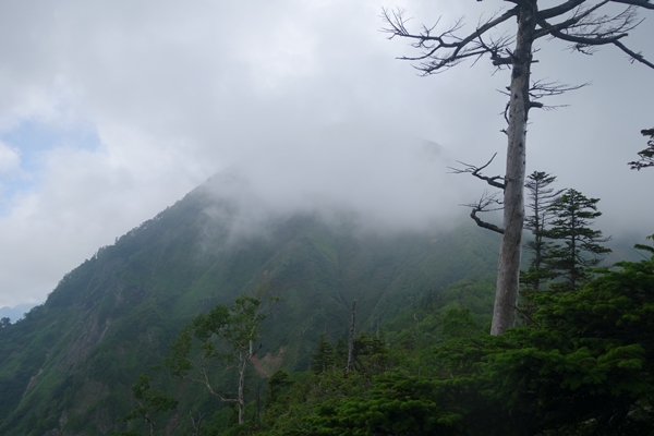 あれが高妻山ぽい・・遠いなー。 そして山頂が雲の中。 |