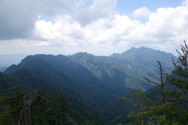 雲の下に出て、戻っていく稜線。 |
