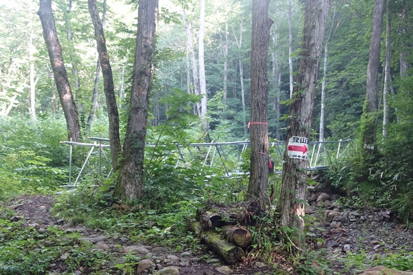 登山道へ。 沢を渡るとありますが、しっかり橋が架かっています。 |