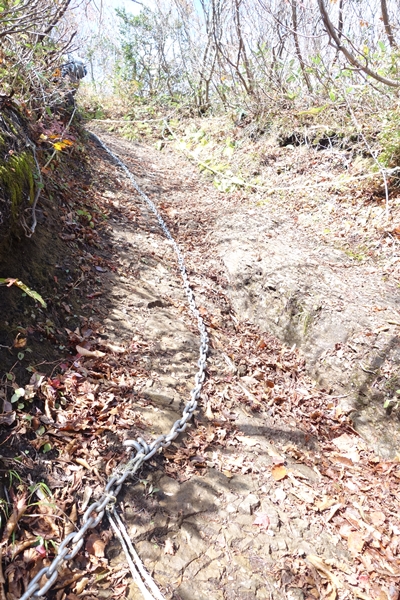 鎖場、下りはちょっと歩きにくく、妻が苦戦中。 |