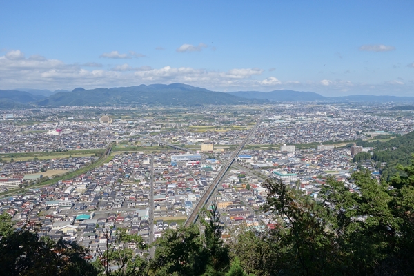 福島市の東側から南側へかけての展望が開けています。 烏ヶ崎展望台が一番見晴は良かったかな。 |